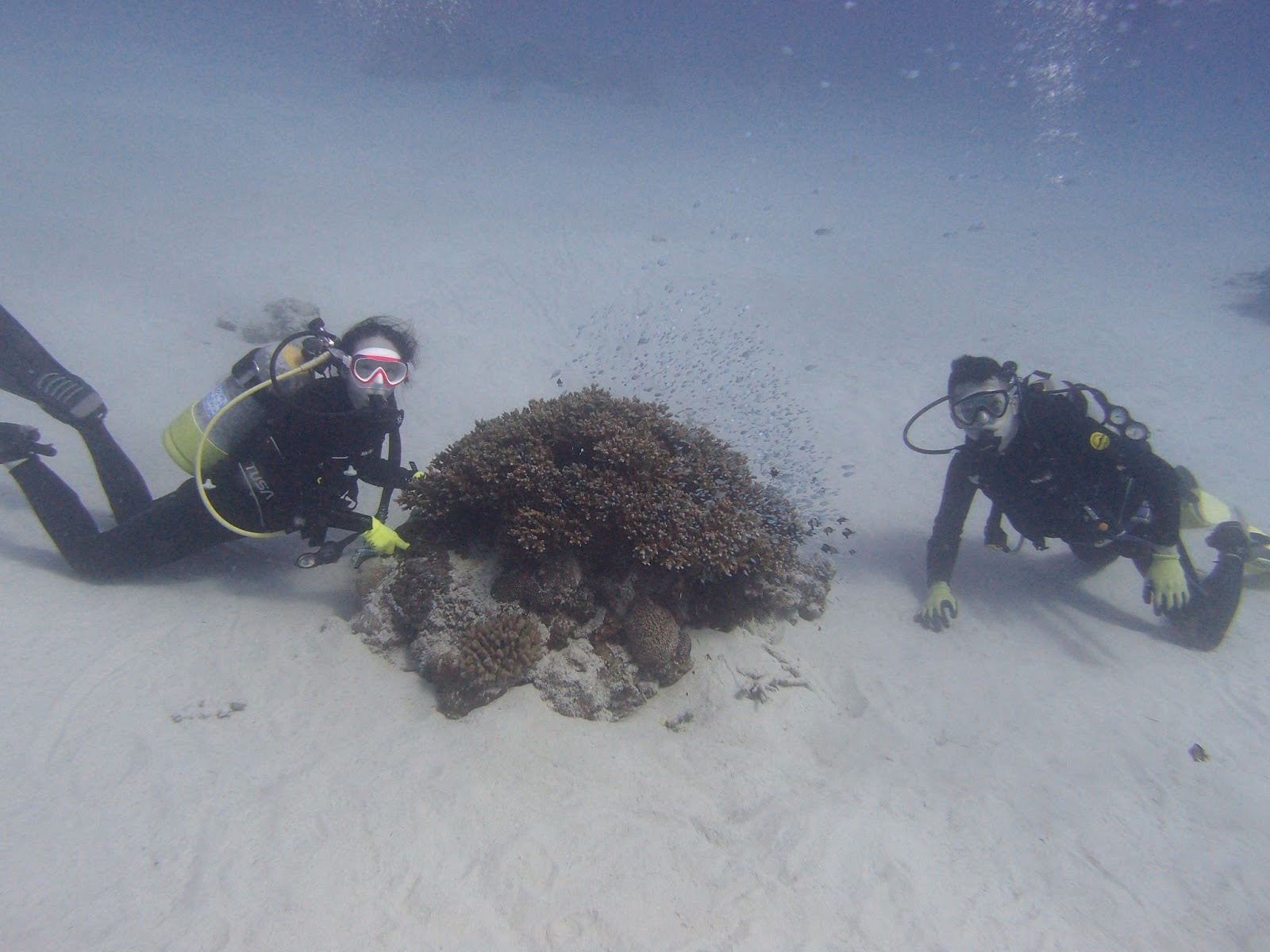 ゴドフレイが体験ダイビングをして、それにライセンスを持ってるクリスティーナが付き添う、といった感じです。